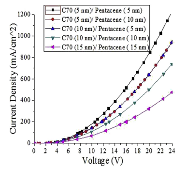 그림 10. 전하생성층의 두께에 따른 J-V 그래프 [11]