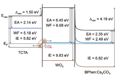 그림 6. TCTA/WO3/BPhen:Cs2CO3의 에너지 준위 [9]