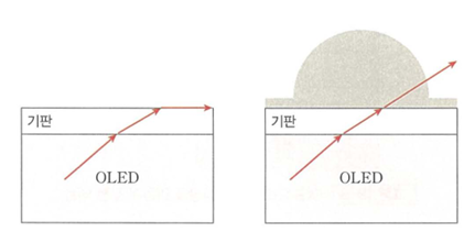 유리기판 상부에 도입된 마이크로 렌즈를 통해 빛이 나가게 되면 입사각이 커지는 효과를 얻을 수 있다. 하지만 공정이 복잡하고 대면적 적용이 어려우며, 광경로의 변경으로 인한 스펙트럼의 왜곡 현상 등으로 인해 디스플레이 적용에는 어렵다는 단점이 있다.